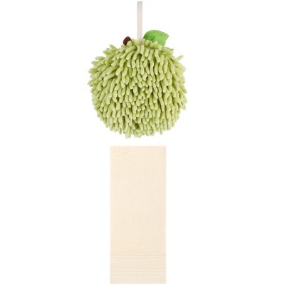 REGALWOVEN Soft Absorbent Cute Fuzzy Hanging Decorative Bathroom Chenille Hand Towel 6" x 15"/7" x 7" 2 Packs