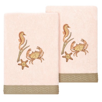SKL Home 2pc Mirage Fringe Hand Towel Set Blush: 100% Cotton, Jacquard Terry, Bathroom Decor