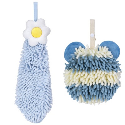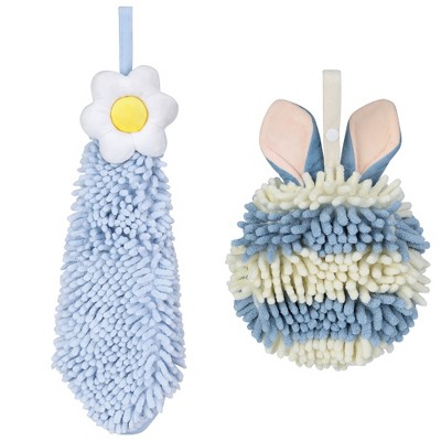 REGALWOVEN Soft Absorbent Cute Fuzzy Hanging Decorative Bathroom Chenille Hand Towel 6" x 15"/7" x 7" 2 Packs