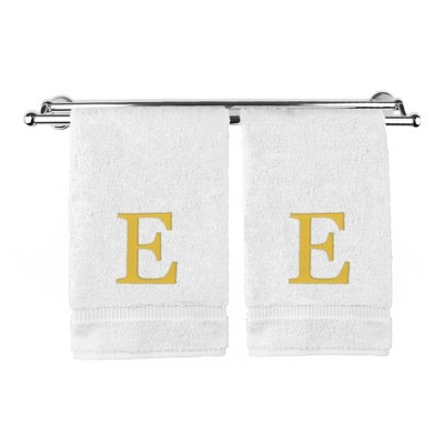 BC BARE COTTON Monogrammed Hand Towel, 100% Turkish Cotton - Set of 2 - White - Gold Block