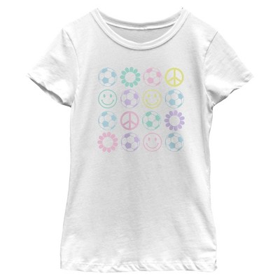 Girls Lost Gods Soccer and Happiness Icon Grid T Shirt