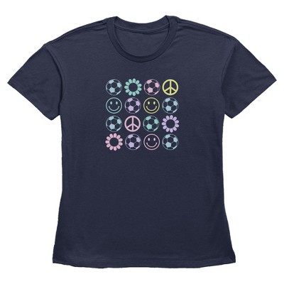 Womens Lost Gods Soccer and Happiness Icon Grid T Shirt