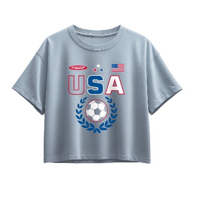 Girls' - Instant Message - USA Soccer Jersey Short Sleeve Boxy Graphic T-Shirt