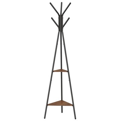VASAGLE Coat Rack Freestanding, Coat Hanger Stand, Hall Tree with 2 Shelves, for Clothes, Hat, Bag, Industrial Style