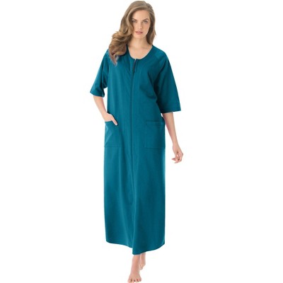 ADR Women's Zip Up Plush Long Robe, Oversized Knee Length Bathrobe with Two Way Zipper