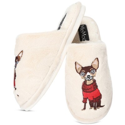 Memoi Dog Dame Plush Hard Sole Slippers Gray S
