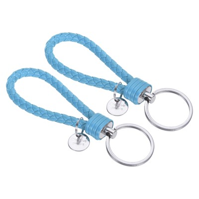 Unique Bargains Braided PU Leather Wallet Keychain with Stainless Steel Key Rings 2 Pcs