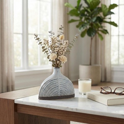 HomeRoots 10" Gray Geometric Bud Terracotta Table Vase