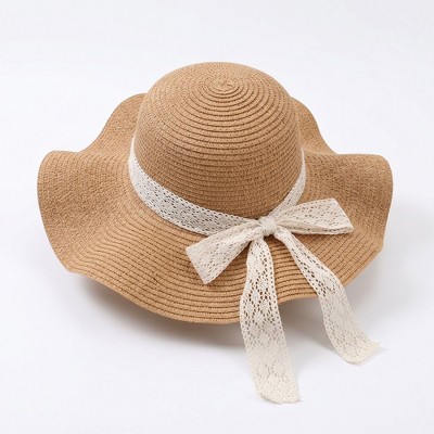 Women's Wide Brim Straw Sun Hat Lace Ribbon Tie Lightweight Summer Beach Hat