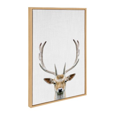 Kate and Laurel Sylvie Deer Color Framed Canvas by Simon Te of Tai Prints, 23x33 Sylvie Natural