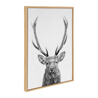 Kate and Laurel Sylvie The Red Deer BW Framed Canvas by Simon Te of Tai Prints, 23x33 Sylvie Natural