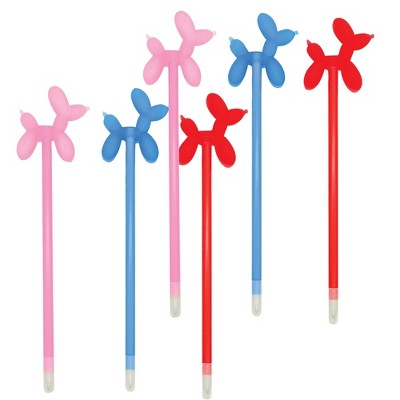 Balloon Dog Pens (6 Pack) - Fun Party Favor, Black Ink, 2" Topper (Red, Pink, Blue)