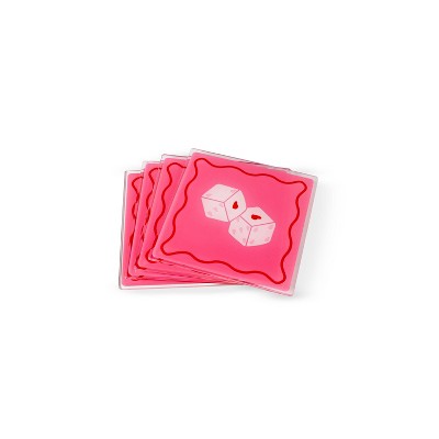 Big Dot of Happiness 25 Ct Lucky in Love Drink Coasters, 4-Inch Disposable Square Paper Coasters for Las Vegas Bachelorette Party, Decor for Drinks