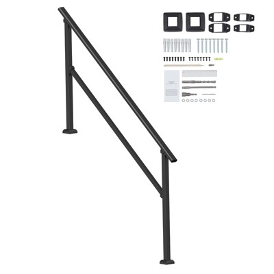 VEVOR Handrails for Outdoor Steps, 1-2 Step Stair Hand Rail Kit, Transitional Carbon Steel Railings with Installation Kit, Stair Rails, Black