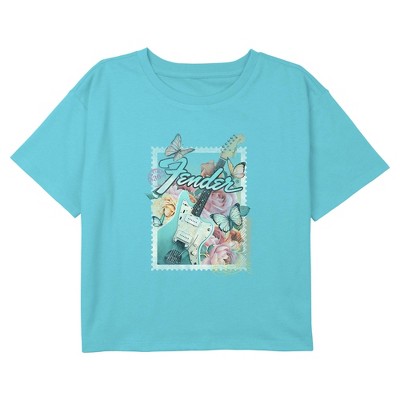 Girl's Fender Retro Floral Stamp Graphic Graphic Cropped T-Shirt