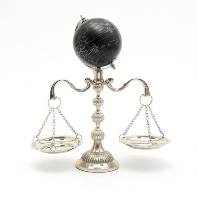 TopComfy Decorative Object Vintage Libra with Globe Scale Tray for Stylish Home Office Decor, Silver, 9"*4.5"*13"