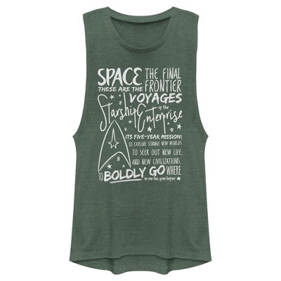 Juniors Womens Star Trek 5-Year Mission Text Festival Muscle Tee