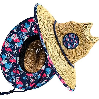 GRINDERPUNCH Straw Lifeguard Hat for Men & Women Wide Brim Sun Protection Beach Hat