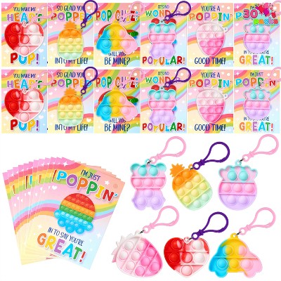 Joyfy Valentine’s Day Gift Card with Pop Keychain, Stress Relief Fidget Toys for Kids Valentine's Party Favors and Classroom Exchange Gift
