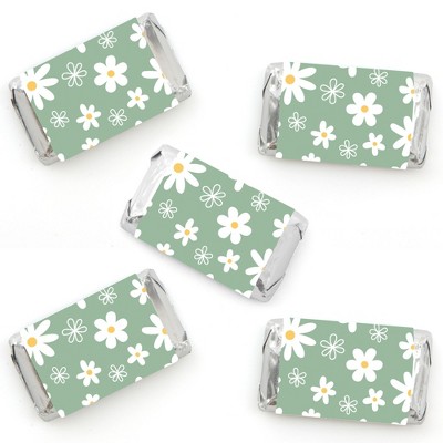 Big Dot of Happiness Sage Green Daisy Flowers - Mini Candy Bar Wrapper Stickers - Floral Party Small Favors - 40 Count