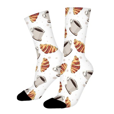 Coffee And Croissant Pattern Women Printed Crew Socks Funny Funky Socks Soft Polyester Novelty Gifts for Artists Men