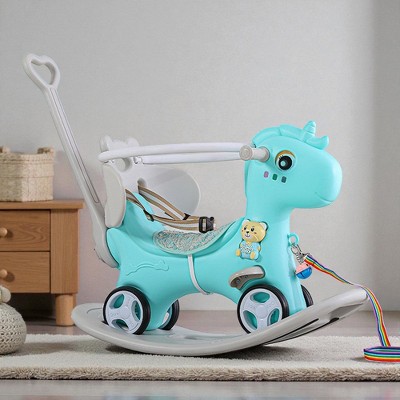 Mshliw Rocking Horse for Toddlers, 4-in-1 Balance Bike Ride-On Toy with Push Handle, Backrest and Balance Board,Indoor & Outdoor Riding Toy for Kids