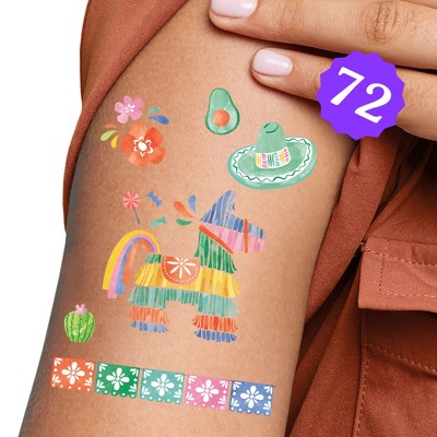 Big Dot of Happiness Fiesta Temporary Tattoos, Mexican Themed Birthday Party Favors, Cinco De Mayo Decorations, 12 Sheets (72 Fake Tats)