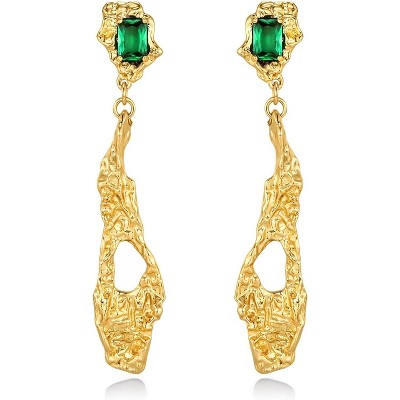 Guili Elegant Twist 14K Gold Plated Sterling Silver Oval Oblong Hoop Earrings with Luminous Cubic Zirconia for a Chic, Timeless Look