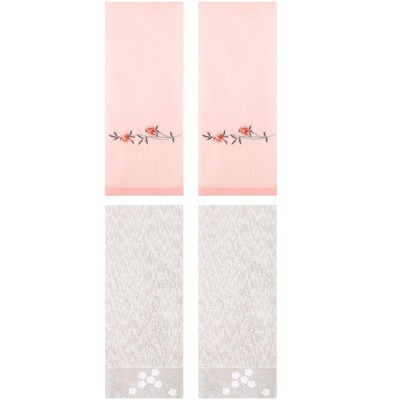 REGALWOVEN 4 Pcs Bathroom Decor Cotton Soft Absorbent Floral Embroidered Hand Towel 13" x 29"