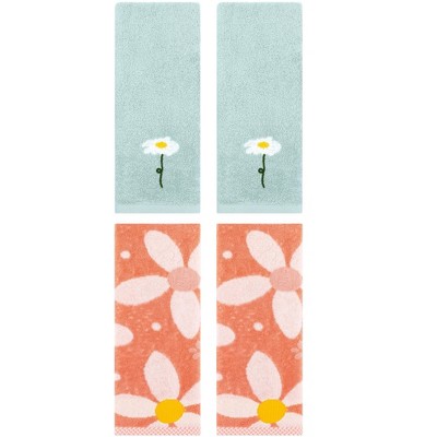 REGALWOVEN 4 Pcs Soft Absorbent Floral Pattern Hand Towels