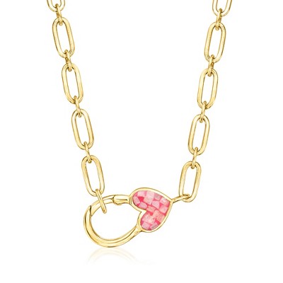 Ross-Simons Pink Mother-Of-Pearl and Red Agate Reversible Heart Pendant Necklace in 18kt Gold Over Sterling Size 18
