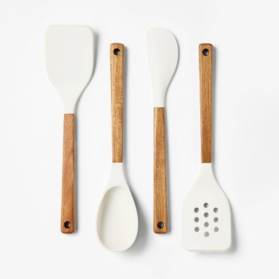 4pc Silicone Kitchen Utensil Set Natural Wood - Figmint™