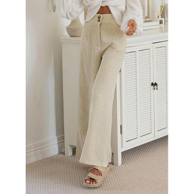 Casual Corduroy Wide Leg Trousers for Women, High Waist Double Button Stretch Pants