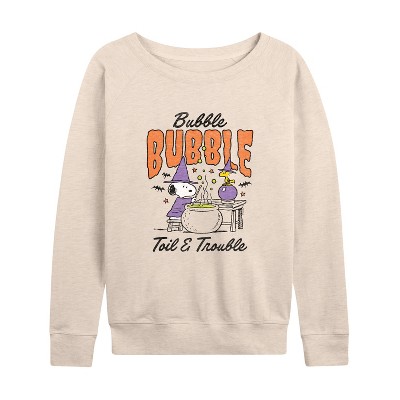 Women's - Peanuts - Bubble Bubble Toil Trouble Lightweight French Terry Wide Neck Long Sleeve Graphic Shirt