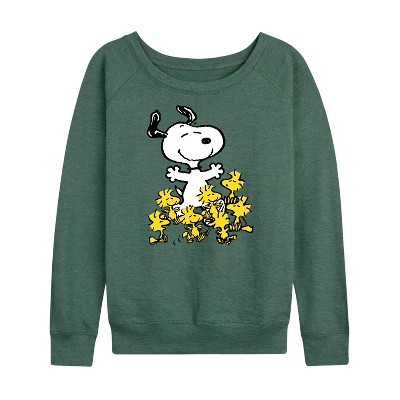 Women's - Peanuts - Snoopy and Woodstocks Lightweight French Terry Wide Neck Long Sleeve Graphic Shirt