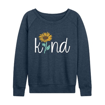Women's - Instant Message - Kind Sunflower Lightweight French Terry Wide Neck Long Sleeve Graphic Shirt
