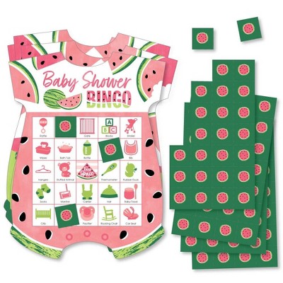 Big Dot of Happiness Sweet Watermelon - Picture Bingo Cards and Markers - Fruit Party Baby Shower Shaped Bingo Game - Set of 18