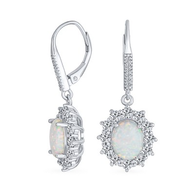 Bling Jewelry Cubic Zirconia Accent Pave Halo CZ Solitaire Oval White Synthetic Opal Drop Earrings Lever back Sterling Silver