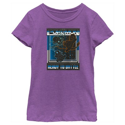 Girl's Pokemon Ready to Battle Retro Grid T-Shirt