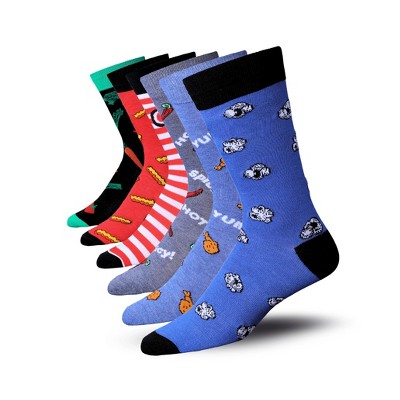 JAMES FIALLO Mens 6-Pairs Whimsical Flavorful Fiesta Colorful Patterned Crew Dress Socks
