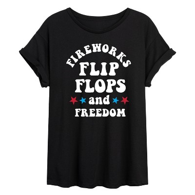 Women's - Instant Message - Fireworks Flip Flops Freedom Oversized Graphic T-Shirt