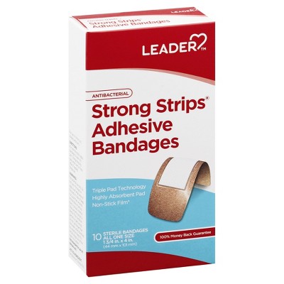 Leader Antibacterial Strong Strips All One Size Adhesive Bandages 10 ea