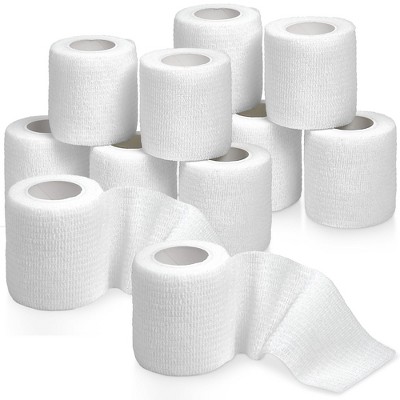 Self Adherent Cohesive Tape Pack of 12 2"x5 Yards White, Self Adhesive Athletic Wrap for Ankle, Wrist & Knee Sprains