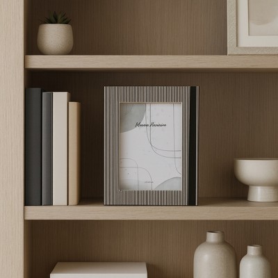 Modern Photo Frame with Lines Pattern Border - Decorative Picture Frame for Bedroom, Living Room, and Home Decor Accent - Black & White