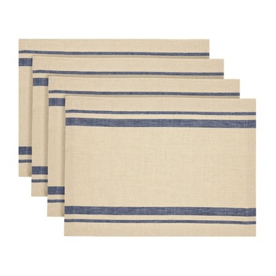 Linen Placemats Set of 4 for Mothers Day, St Patricks Day, Spring, Easter Dining Table Decor - French Stripe, 14" x 19"