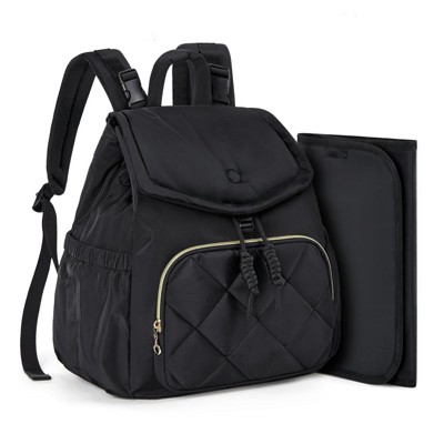 Itopfox Compact Diaper Backpack for Travel, Lightweight Quilted Baby Bag with Stroller Straps & Changing Pad, 11 Pockets