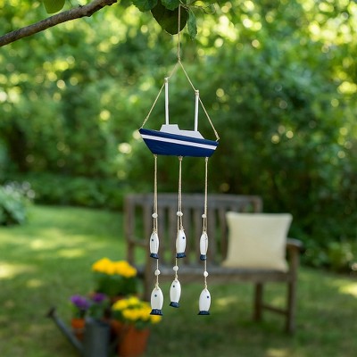 Coastal Sailboat Garden Decor - Wind Chimes for Outside Patio and Porch Decor with Hanging Fish Chime - Outdoor Hanging Decor Windchimes - 39", Blue