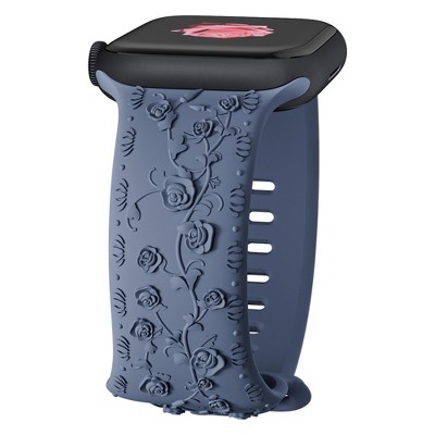 HTUTWOO Rose Engraved Apple Watch Band, Floral Sport Silicone Strap 38/40/41/42/44/45/46/49 mm for iWatch Series 11 10 9 8 7 6 5 4 3 2 1 SE Ultra