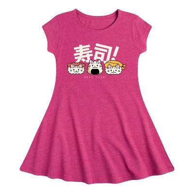 Girls' - Instant Message - Neko Sushi Fit & Flair Cap Sleeve Graphic Dress