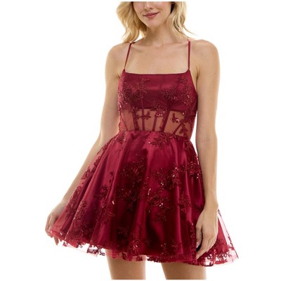 B. DARLIN Womens Sequin Embroidered Corset Fit & Flare Dress